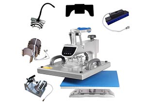 New advanced Combo Multipurpose swing away Heat Press Machine success of the Digital Combo lies in its Instantly interchangeable system of Heat Platens and Bottom Tables, with a new modern LCD controller, simplified display screen, makes it easier for customer to operate and read-out, besides, advanced & sturdy base seat and pressure structure extend the lifetime of machine, blue silicone mat match with a silver-grey machine body makes it looks more industrialize. Available size: 38x38cm.